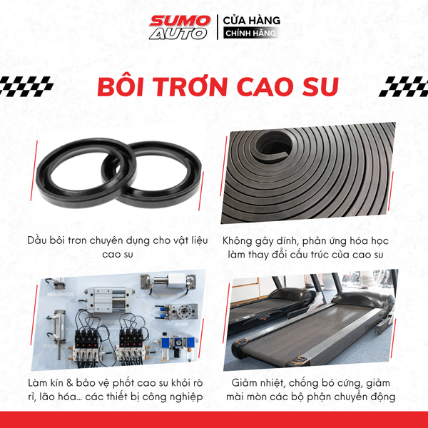 Dung dịch Silicone Sumo Industrial được ưa chuộng nhờ khả năng tương thích tuyệt vời với cao su. Silicone có tính trơ hóa học, không gây phản ứng làm hỏng cao su, đồng thời tạo lớp màng bảo vệ giúp cao su duy trì độ mềm mại, đàn hồi, chống nứt gãy do tác động của môi trường. Đây là giải pháp lý tưởng cho viền cao su cửa xe, dây đai hoặc các chi tiết cao su trong máy móc.